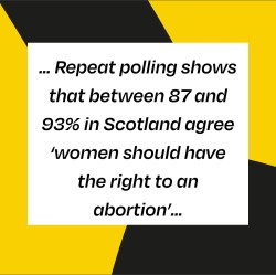 Support for abortion rights is widespread: Repeat polling shows that the overwhelming majority in Scotland (83-97%) agree that “women should have the right to an abortion”. All relevant professional healthcare bodies in the UK support decriminalisation.