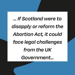 Abortion was devolved to the Scottish Parliament in 2016, and it is open to the Scottish Parliament to pass legislation that amends the Abortion Act.